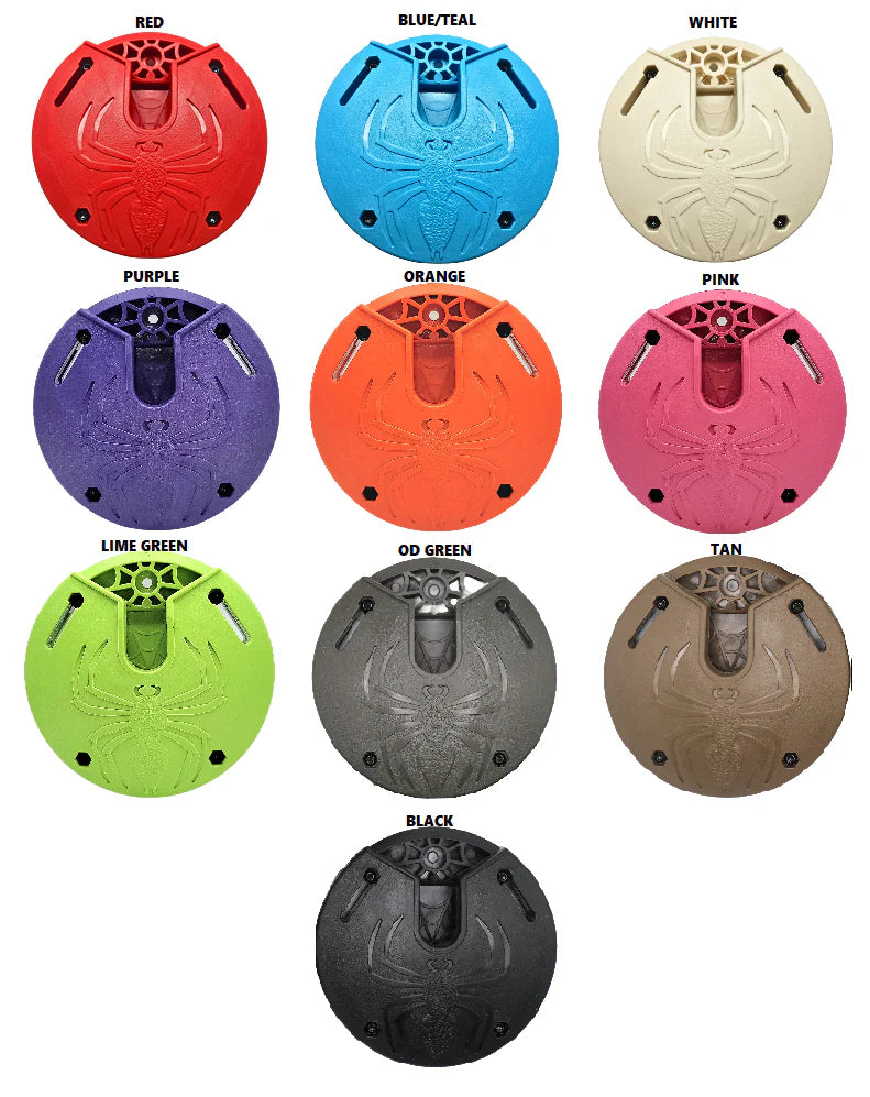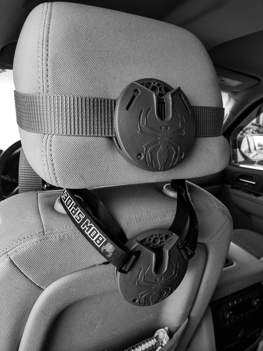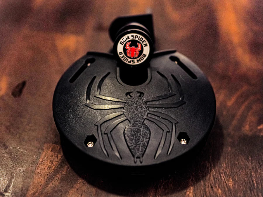 The Bow Spider universal bow packing system fits any compound bow and affixes to any pack, hip, tree, wall, or car for easy storage and access.
