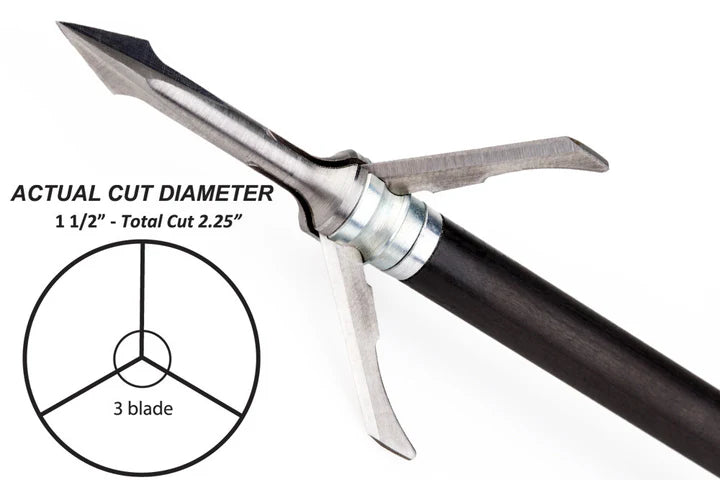 NEW Fatal Steel combines multiple pieces into a single blockbusting package. The same classic look as our original heads with a one-piece mean streak! Features our original "No O-Ring" design and shock absorbing blade spring to assure superior penetration with no deflection from any angle. Shaft and tip are engineered to extend far enough to provide start-up penetration just before blades arrive for true trajectory after impact and maximum follow-through damage. Combine the fastest-opening mechanical available with the one-piece power, strength, and tool-steel sharpness of a 100% stainless steel body. FATAL STEEL! "WATCH 'EM DROP"!