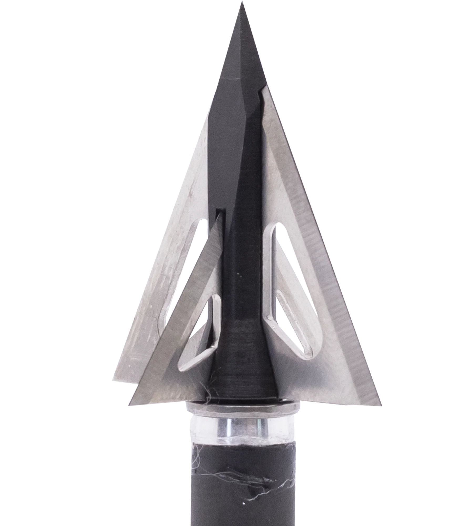 A deep penetrating cut-on-contact design with strength and durability at the forefront of its maxims; then married with all the laser-like flight characteristics you have come to expect from a Slick Trick. All the advantages of a one piece head with the ability to replace blades and maintain nearly two inches of razor-sharp cut.