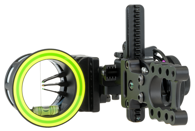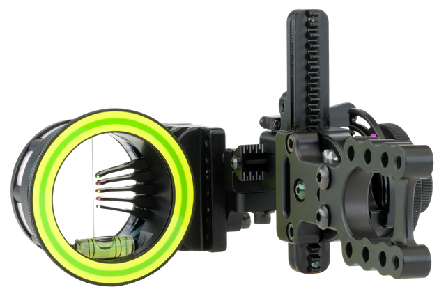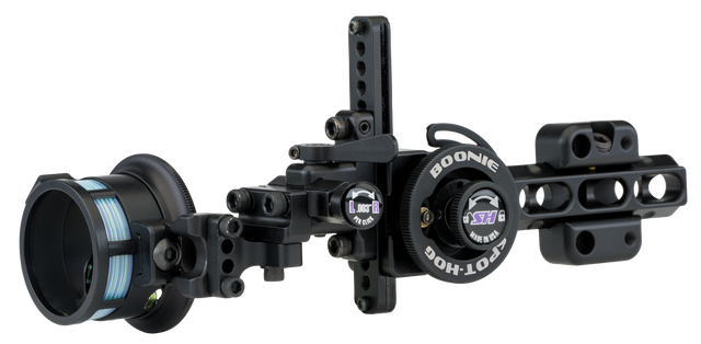 The Boonie is offered with one of three different mounting options, hard mount, picatinny mount, or a 4" dovetail mount that is Bridge Lock™ compatible. The head is available with a single pin, dual pin, or triple stack vertical pin, as well as horizontal 3 and 5 pin options with 0.010 or 0.019 pin/fiber combinations.