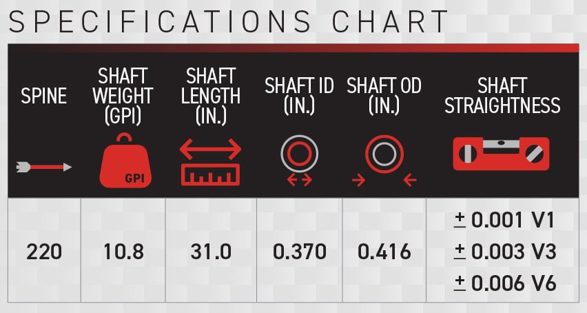 The Revolutionary V-TAC Series Target Arrows were designed to dominate. The Custom 3K™ 90° weave provides unparalleled durability by providing a protective layer that makes the arrow less susceptible to tail slap damage and allows it to recover faster on shot. The 90° weave provides superior spine deflection and uniformity. Lightest 25 series shafts on the market for increased speed. The largest diameter of the V-TAC series was specifically designed with Vegas Worlds in mind.